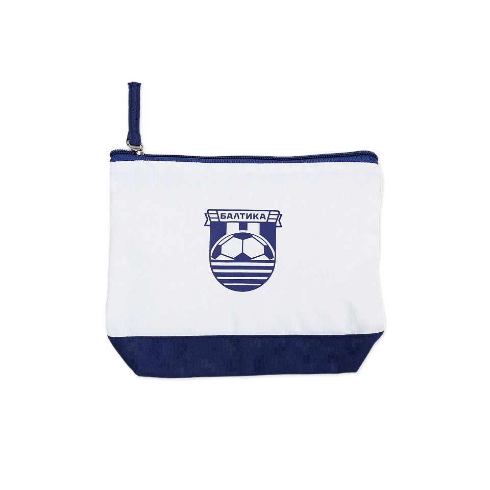Косметичка с логотипом, бело-синяя
