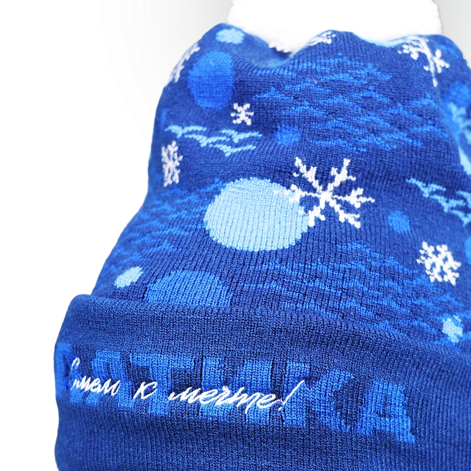 Новогодняя трикотажная шапка: тепло, уютно, празднично.